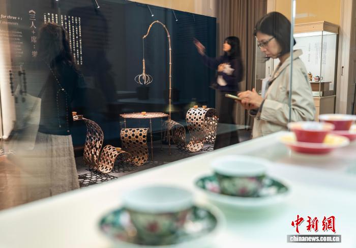 香港艺术家王永恩和林嘉裕从博物馆藏品茶具中汲取灵感,分别创作了9套和11套作品。他们不仅继承了榫卯、竹编等传统工艺,还融入了当代艺术的表现手法。展品形式多样,既有木质原始质感的小茶碗,有竹雕精美的茶具,还有高约2米的榫形茶架和3米多长的竹编茶席,描绘了都市人在忙碌之余喝茶的乐趣。林家瑜告诉记者,他在创作过程中非常重视香港的联系。他通过香港的动植物、城市和郊区的景观,通过他的眼睛展示了香港的独特风格,也展示了古代与现代文明交融的美丽。