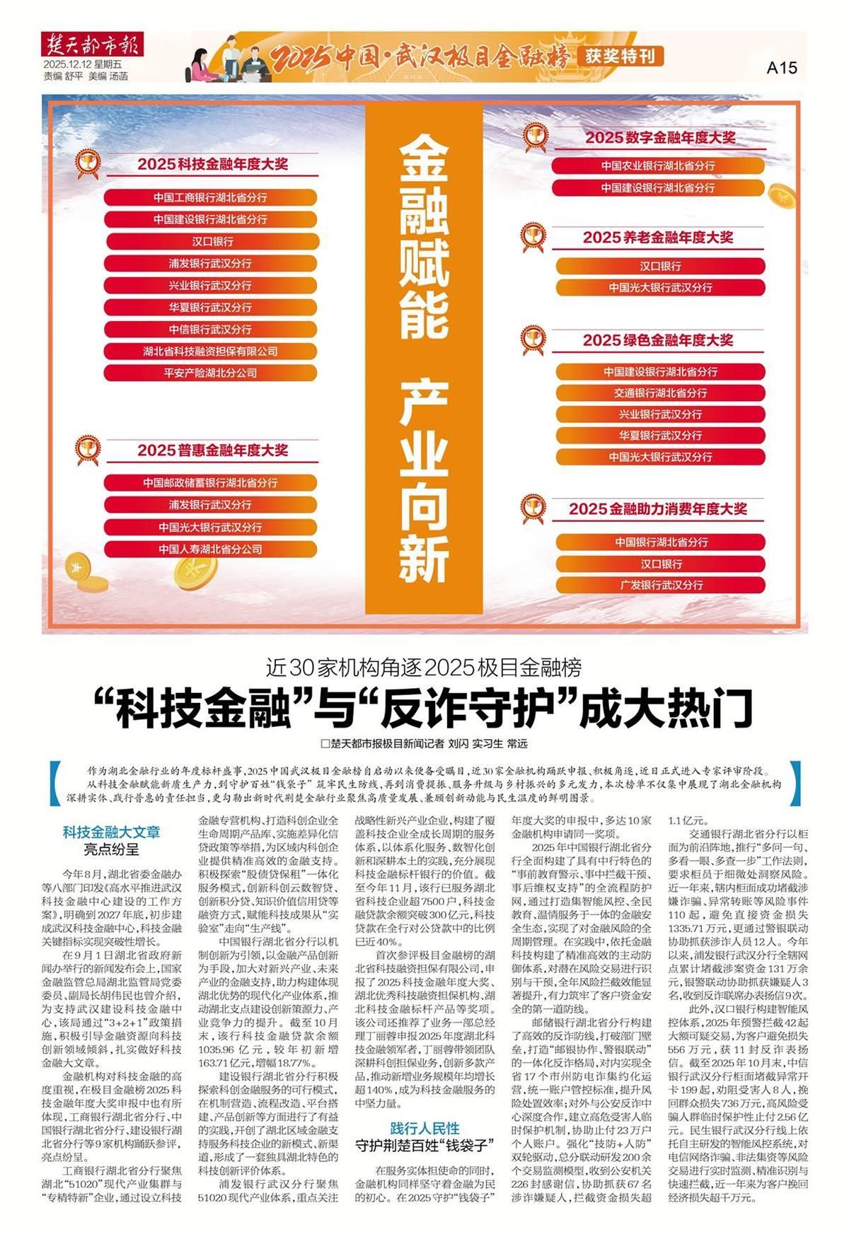12月12日,2025中国·武汉积木金融排行榜揭晓。平安产险湖北分公司凭借在科技创新、乡村振兴、社会责任等方面的突出表现,强调服务行业突出贡献、赋能人民,荣获“2025科技金融年度奖”、“2025湖北乡村振兴杰出贡献机构”、“2025最具社会责任保险公司”。