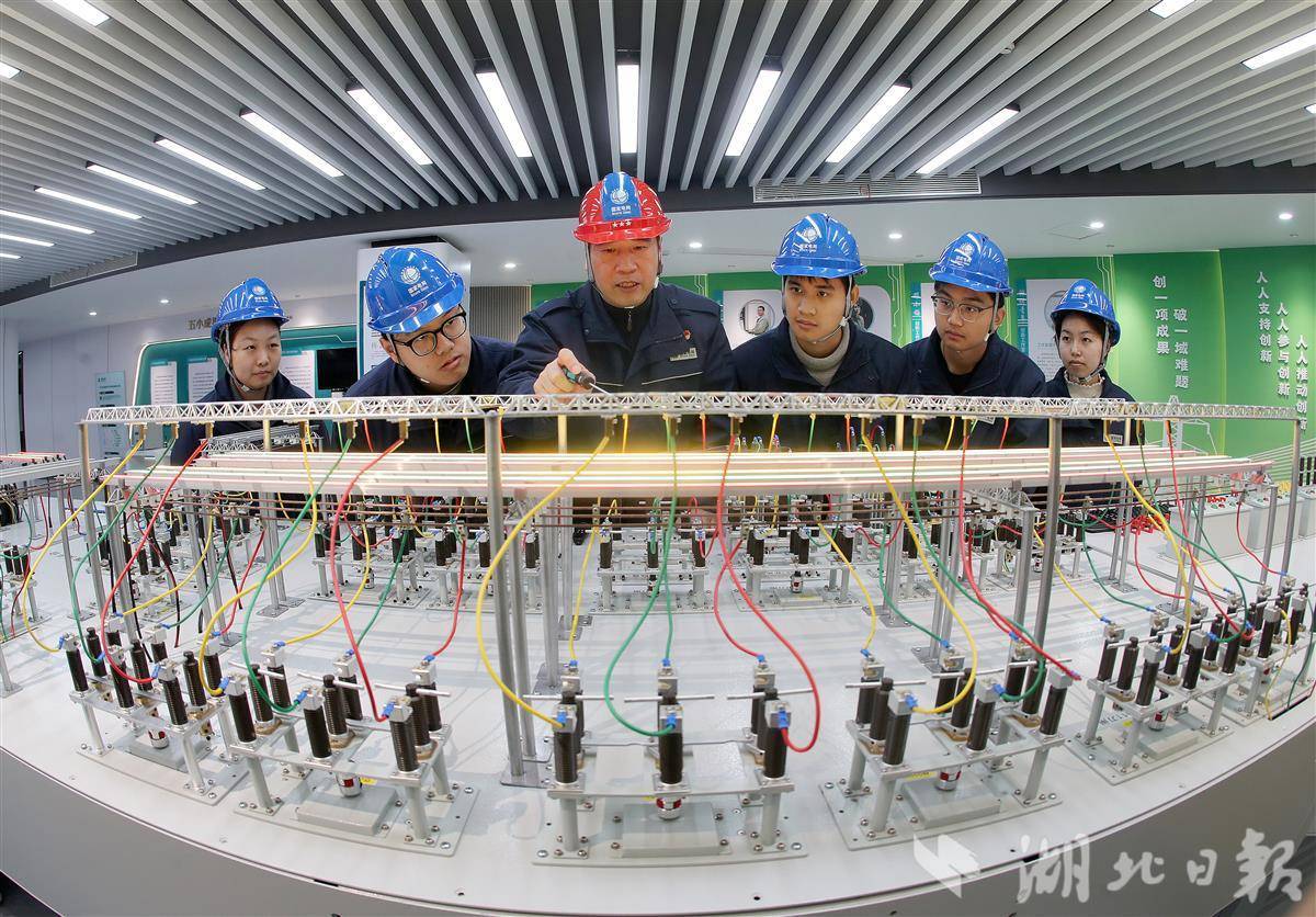 12月24日,在国网荆门供电公司“皮志勇劳模创新工作室”,全国劳模皮志勇带领一群年轻人,面对新电力系统继电保护设备不断的技术变革,在保证供电可靠性的同时,推动能源系统向绿色高效能源系统转型升级。截至目前,工作室已取得56项创新成果,获得国家专利55项。荆门作为三峡输电和“西电东送”的重要通道,是湖北特高压输电线路最集中的地区。近年来,国网荆门供电公司以劳模、工匠为核心,在变电、输电等专业领域成立创新工作室,系统解决运行和运行中的技术难题。d 电网维护。通过“传授、辅导”机制,将创新经验转化为全体员工技能提升的动力,形成“促创新-应用”的良性循环,通过技术创新全面提升电网安全稳定水平。 (视觉网络 赵平 李益佳 摄)12月24日,在国网荆门供电公司“皮志勇劳模创新工作室”,全国劳模皮志勇(左三)带领一群年轻人攻关新型电网系统继电保护装置不间断电源变换技术。 12月24日,在国网荆门供电公司“皮志勇劳模创新工作室”,全国劳模皮志勇(左三)带领一群年轻人研发继电保护设备不间断电源变换技术新电力系统中不存在。 12月24日,在国网荆门供电公司“皮志勇劳模创新工作室”,全国劳模皮志勇(中)带领一群年轻人,攻关新电力系统继电保护设备持续创新技术。 12月24日,在国网荆门供电公司“皮志勇劳模创新工作室”,全国劳模皮志勇(右起)带领一群年轻人孜孜不倦地攻关新电力系统继电保护装置的革命性技术。
